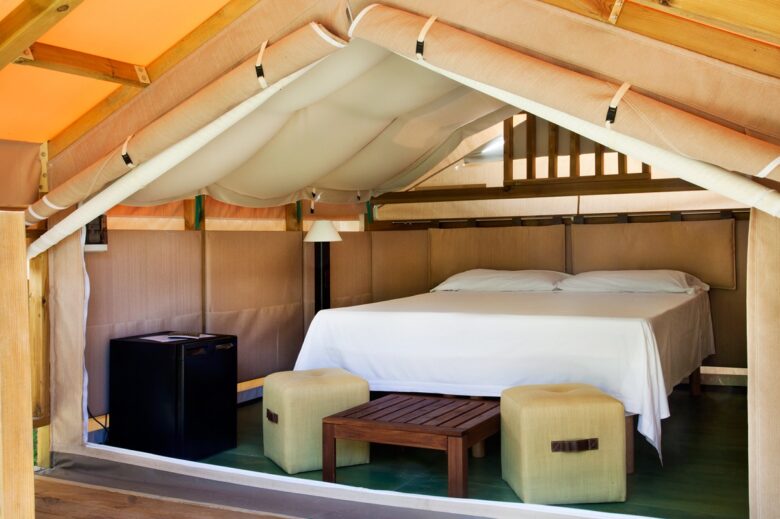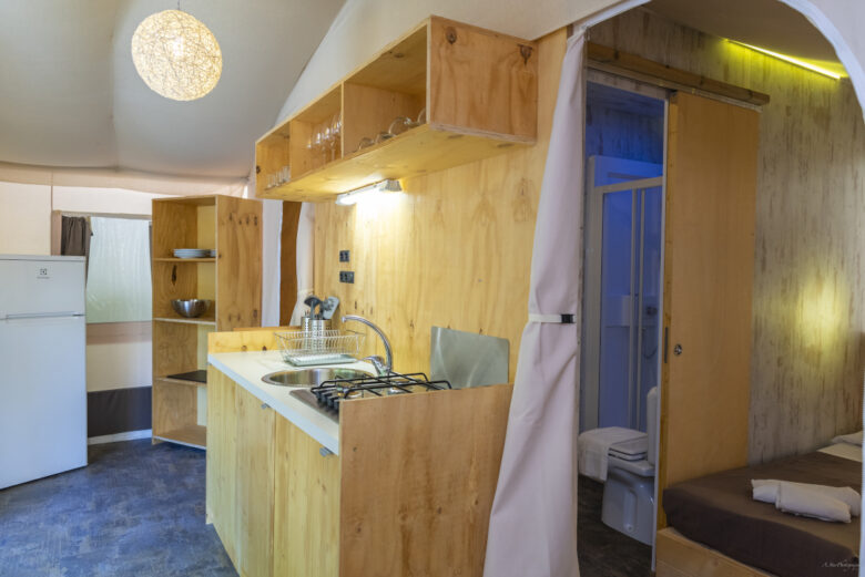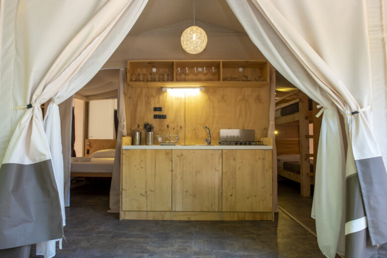 Die Lodge-Zelte des Camping Village Santapomata vereinen Natur und Komfort im perfekten Glamping-Stil: ideal für alle, die ein umweltbewusstes Outdoor-Erlebnis suchen, ohne auf stilvolle Räume, Entspannung und nachhaltiges Design zu verzichten.